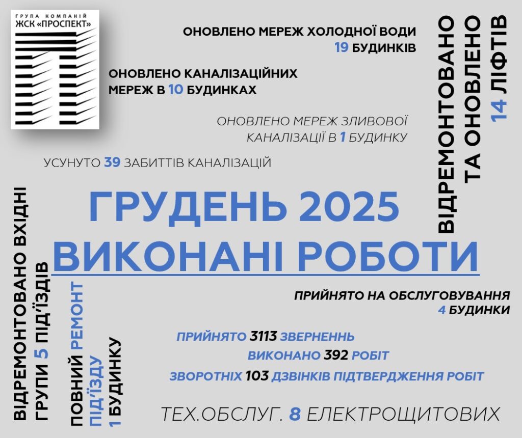 Робимо ваш життєвий простір зручним та безпечним. Працюємо на покращення вашого побуту. Дякуємо за співпрацю. З повагою та турботою про вас, група житлово-сервісних компаній “Проспект”.